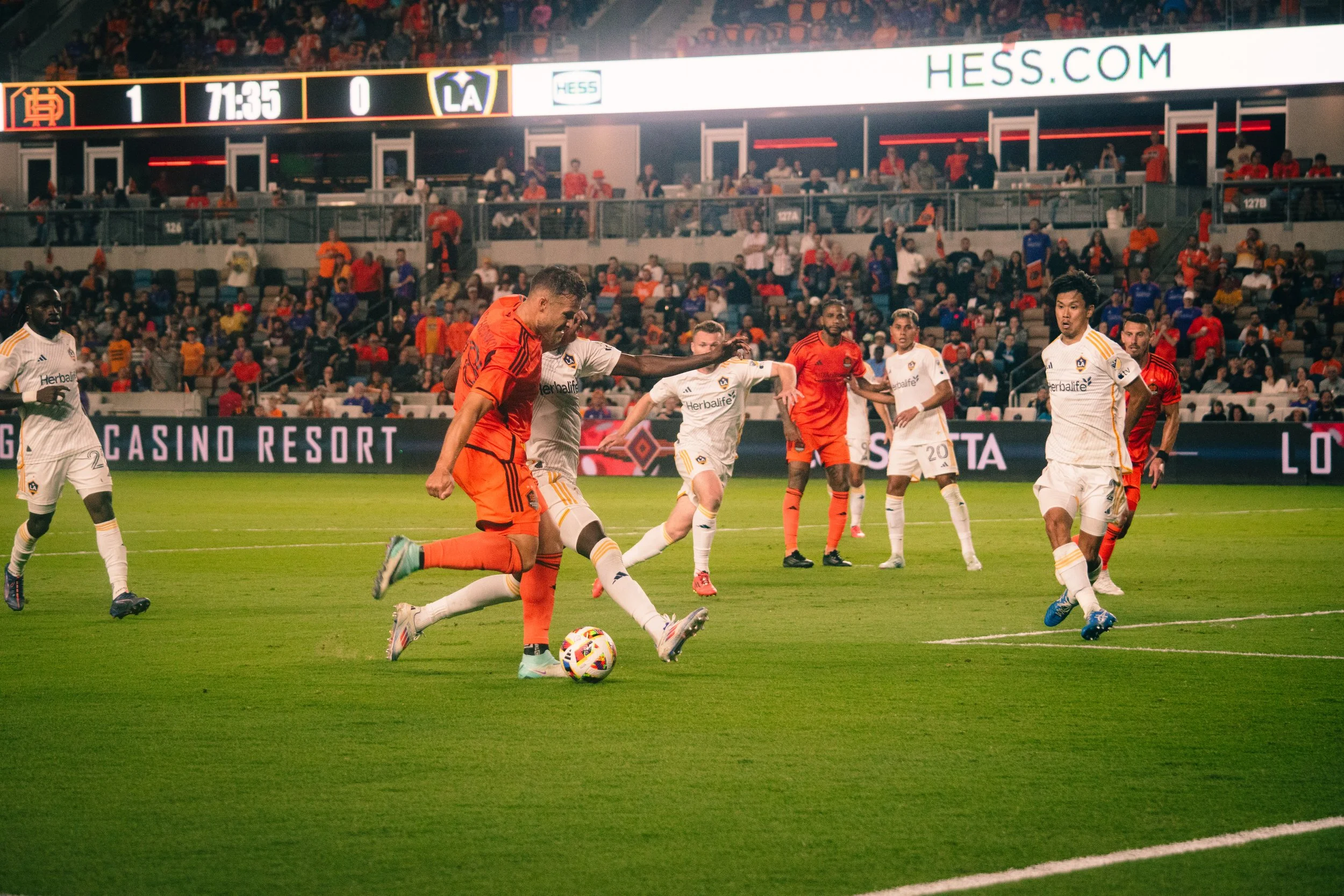 As the referee sounded his whistle LA Galaxy started to roll the ball. The first 5 minutes both teams are coming in hot with the Dynamo and the LA Galaxy being aggressive towards each other. On the 15 th minute Carrasquilla shot the ball it ended up hitting the goal post almost making the first. In a tight first minute the Houston Dynamo taking the initiative but then the LA Galaxy had a one-on-one opportunity but Clark made the save forcing a corner kick. 30 minutes passed and the game was still 0-0 both teams have made a good first half, but the Dynamo have created more opportunities but hasn’t been able to capitalize. In the 37th minute Carrasquilla again made the shot, but the McCarthy denied it. On the 44 th minute Ezequiel Ponce made the first goal of the game putting the Dynamo’s 1-0. An addition of 2 minutes were added to the first half. As the Referee gave the whistle the first half ended 1-0 advantage for the Dynamos both teams having a total of 8 shots each an impressive first half.
