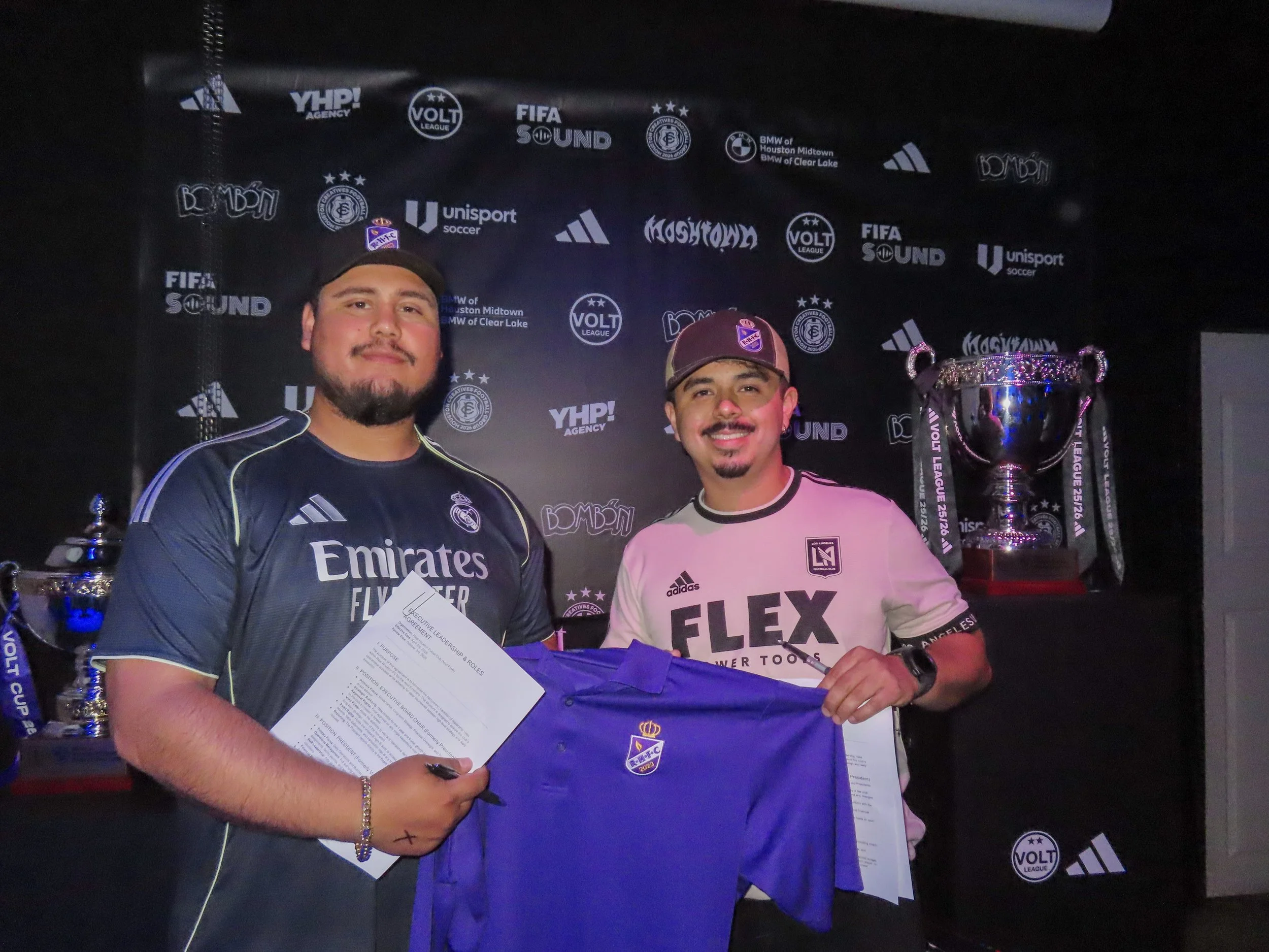 Big moment of the night came with breaking news involving Real Houston. At the event, Rigoberto Cortez is stepping into the Chairman role for Real Houston, while Juan Valdez, previously Vice President, is stepping into the President position, and Oscar Guerrero is taking over as Vice President. The announcement carried extra weight within the local soccer scene, as Real Houston currently has two teams in Volt League — one in Volt League 1 and one in Volt League 2.