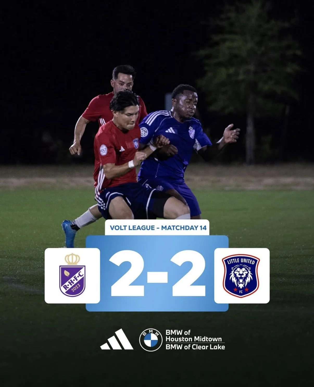 In a tightly contested Matchday 14 clash, RHFC and Little United FC played to an exciting 2–2 draw, delivering one of the most balanced and competitive matches of the weekend.