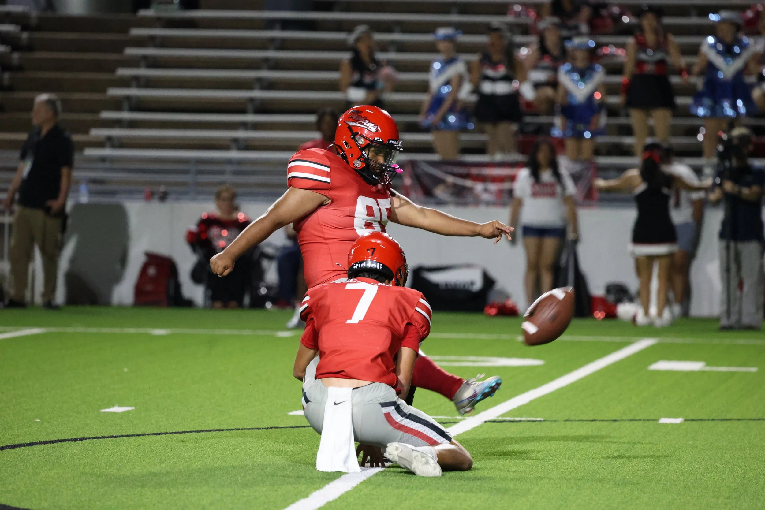 Coming out of halftime with renewed energy, South Houston continued their dominance. Number 7 exploded for a 45-yard run, crossing into the end zone for another touchdown. The extra point was good, extending the Trojans' lead to 23-0, putting Sam Rayburn further out of reach.
