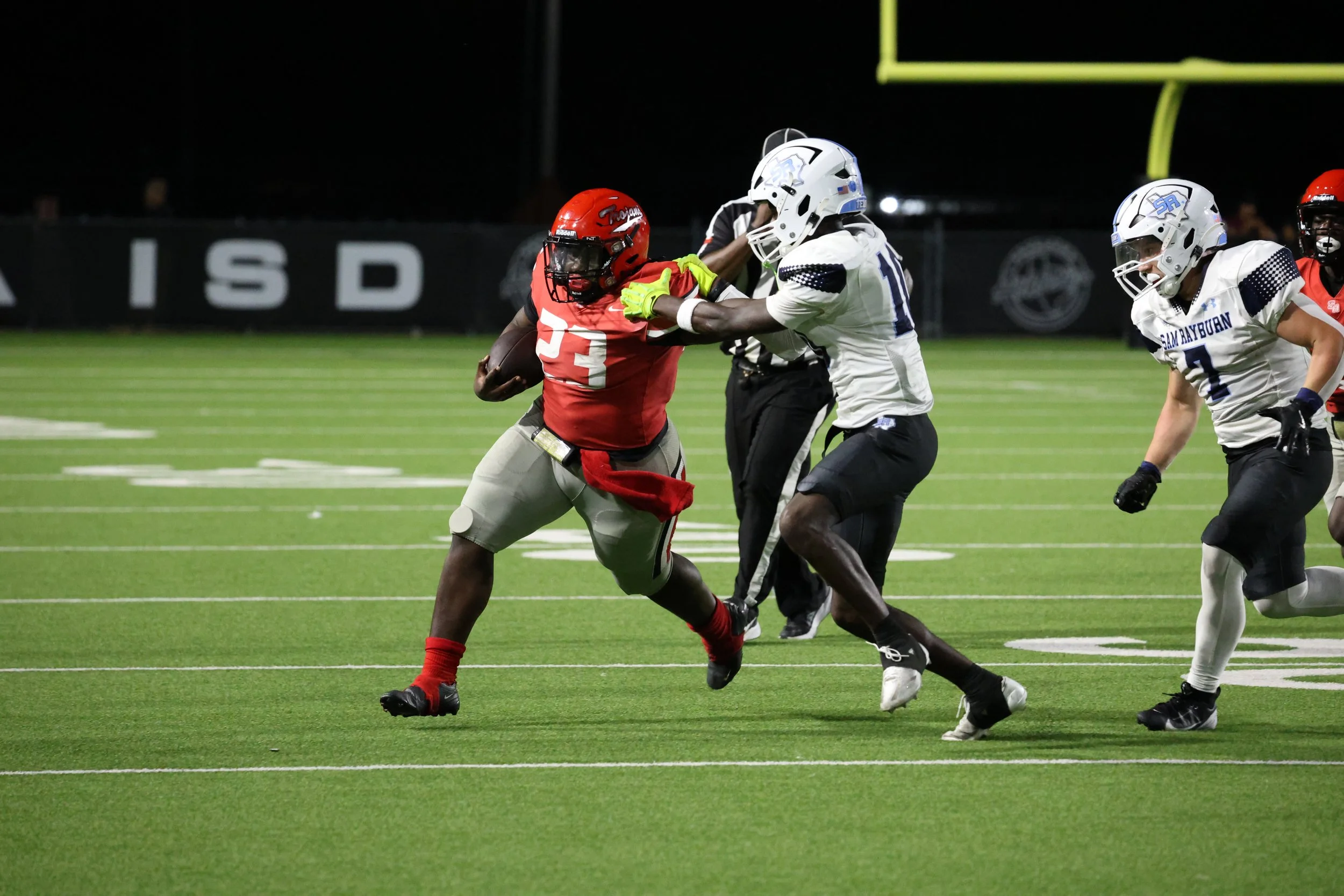 South Houston sealed the victory in the fourth quarter when number 4 scored the final touchdown of the night. Another successful extra point brought the score to 30-0, and with a lockdown defensive effort, the Trojans ensured that Sam Rayburn never had a chance to respond.