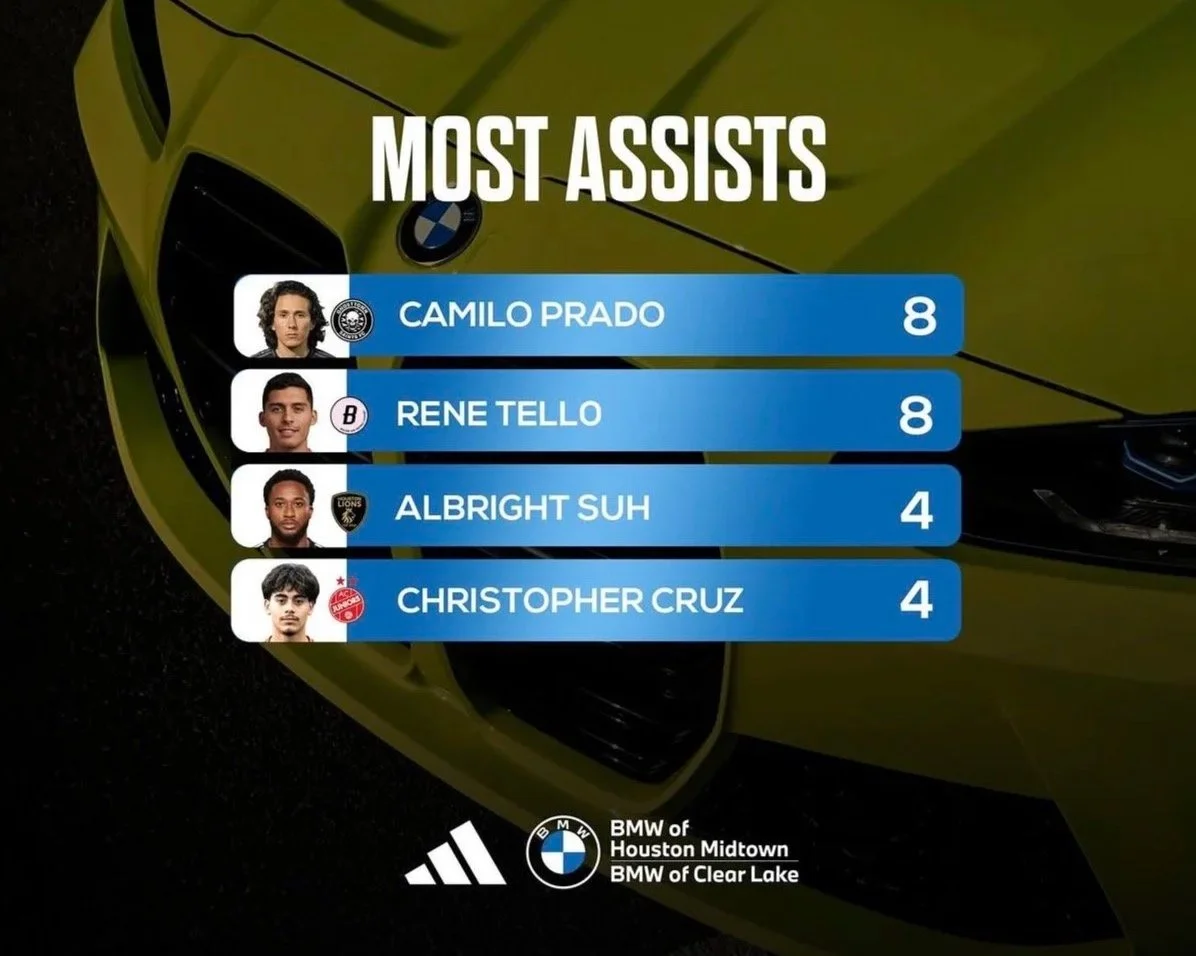 The thriller of the weekend. Twelve total goals were scored in an end-to-end showdown, with Houston United coming out on top in a 7–5 classic.