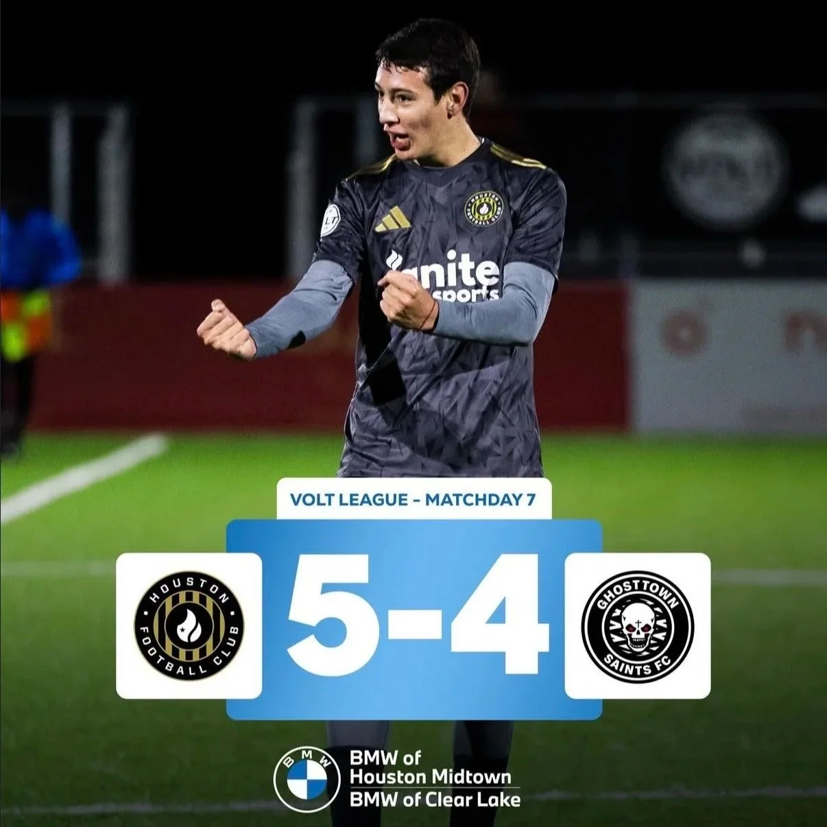Houston FC closed out VOLT 1 action with a dramatic 5–4 win over league leaders Ghosttown Saints FC. The high-scoring contest featured constant momentum swings, with Houston FC securing a statement victory late.