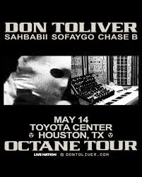 Houston’s own Don Toliver takes center stage at the Toyota Center on May 14. Known for his melodic style and atmospheric production, Toliver has become a standout name in hip-hop.