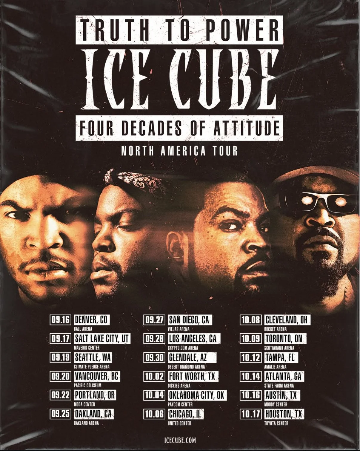 Ice Cube’s 2025 tour, “Truth To Power: 4 Decades of Attitude,” celebrates his storied career and influence in hip-hop over the past forty years. Live Nation+1 Media reports signal the Houston date as a highlight stop in the run, with the tour billed as “a major production unlike anything I’ve ever done before.” Houston Chronicle