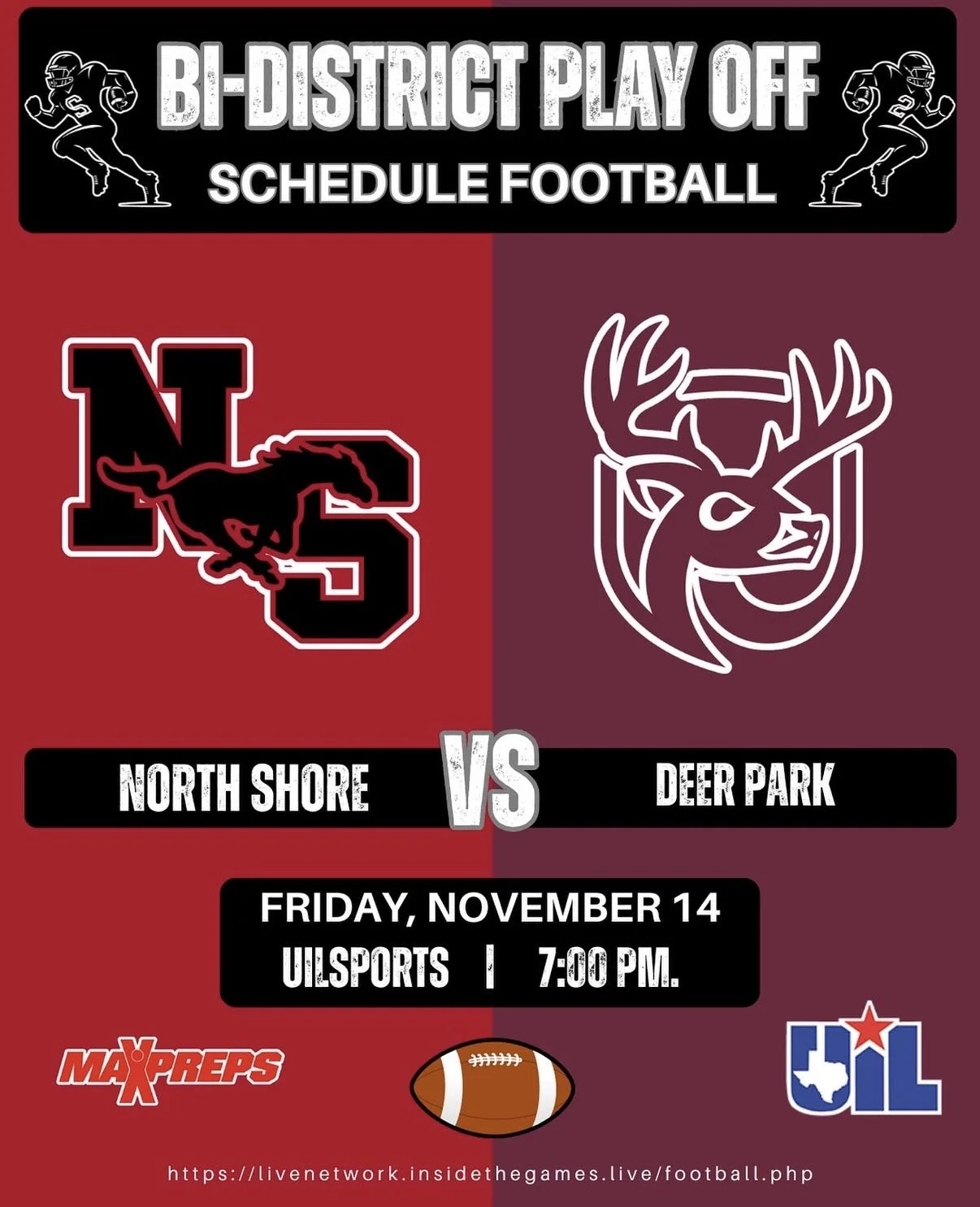 Expect the physicality & execution: North Shore’s defense will test Deer Park’s offense, while the Mustangs’ offense will test how well the Deer can adjust under pressure.