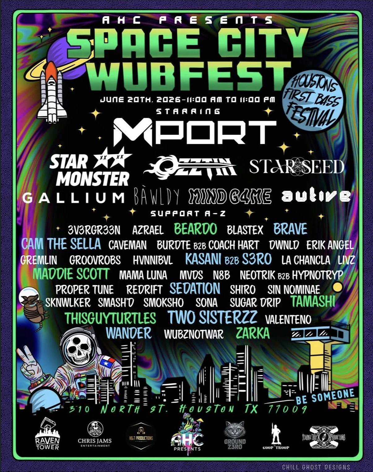 The festival is also leaning hard into community. The official mission on the website describes the event as a chance to connect with the Houston rave community through PLUR, respect, and good energy, while framing Wubfest as something bigger than just a party. The lineup tied to public event listings includes names such as Mport, Star Monster, STAR SEED, bàwldy, and Gallium, adding even more anticipation for Houston bass fans heading into the summer.
