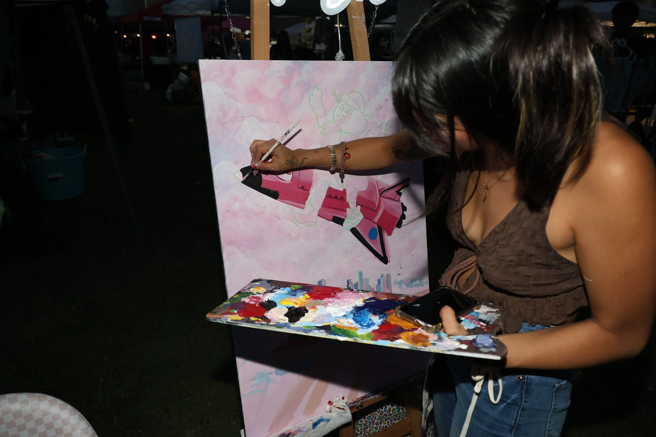 A live artist, known on Instagram as @anasouul, added a unique touch to the night with her captivating artwork. Her live painting session attracted many onlookers, adding an artistic flair to the market.